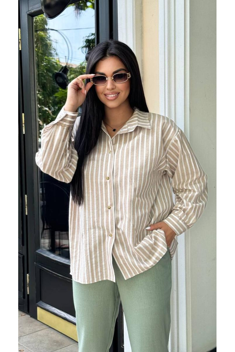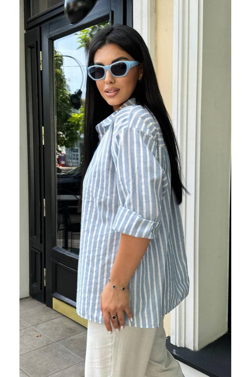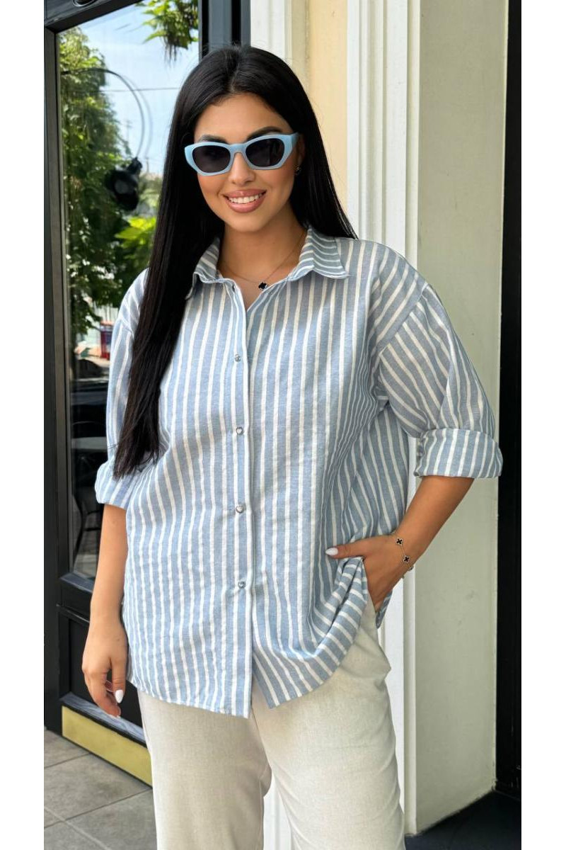 Універсальна сорочка оверсайз зі спущеним рукавом, по спинці – кокетка, застібається на кнопки. Рукав довгий на манжеті, підгорнутий на три чверті пасує краще. ❤️Артикул – ❤️Тканина : льон — котон кнопки з інкрустацією ❤️Кольори: блакитний та бежевий.