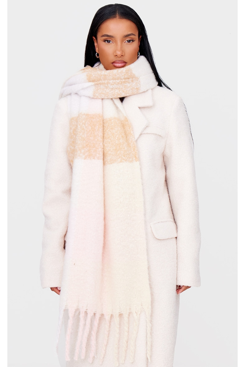 Якщо ваш одяг на день потребує затишного завершального штриха, зверніть увагу на цей бежевий шарф-ковдру з китицями. Виготовлений із бежевого матеріалу з принтом у клітинку та китицями, як можна сказати «ні»? Просто створіть цей бежевий шарф під будь-який образ. Категорія: АксесуариТип товару: ШарфКолір: Бежевий Випадок: День