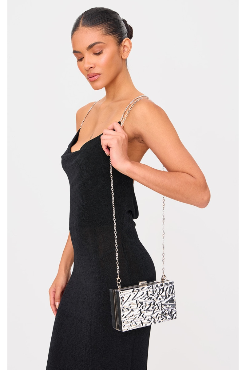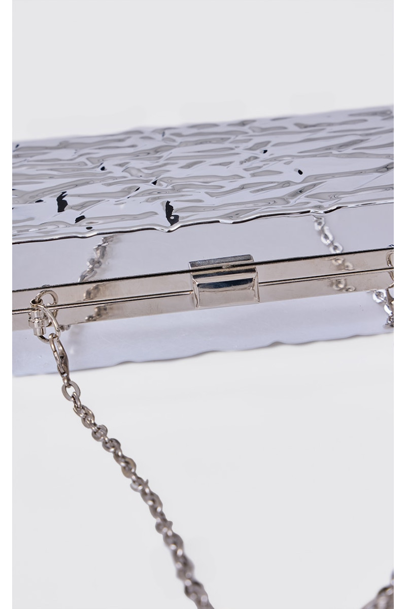 Зробіть заяву про цю сріблясту плавлену сумку-клатч незалежно від своїх планів на вихідні. Ця сумка у розкішному сріблястому відтінку, з гострим розплавленим дизайном і стилем клатча обов’язково стане вашим наступним вибором. Поєднайте чорну максі-сукню та сріблясті аксесуари, щоб справді створити образ. Приблизна висота: 11 см/4,5 дюйма Приблизна ширина: 18 см/7 дюймів Приблизна глибина: 5 см/2 дюйма Категорія: АксесуариТип продукту: КлатчКолір: Срібний Випадок: Вечір