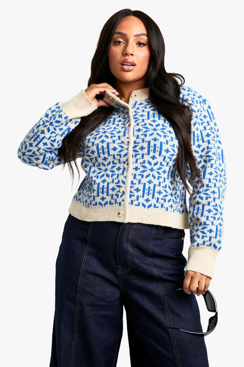 Плюс преміальний в'язаний кардиган із різдвяною ярмаркою