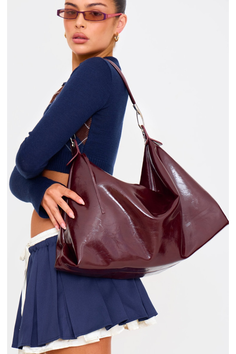Ця велика сумка-тоут з пінополіуретану з лакованими складками бордового кольору займає перше місце в нашому списку хітів нового сезону. До вашої уваги бордовий лакований поліуретановий м’ятий матеріал із завищеним дизайном і застібкою-блискавкою. Що вам не подобається? Стилізуйте цю сумку під свій одяг дня для ідеального завершення. Приблизна висота: 34 см/13,5 дюйма Приблизна ширина: 39,5 см/15,5 дюйма Приблизна глибина: 5 см/2 дюйма Категорія: Аксесуари Тип продукту: сумка Колір: Бордовий Випадок: День