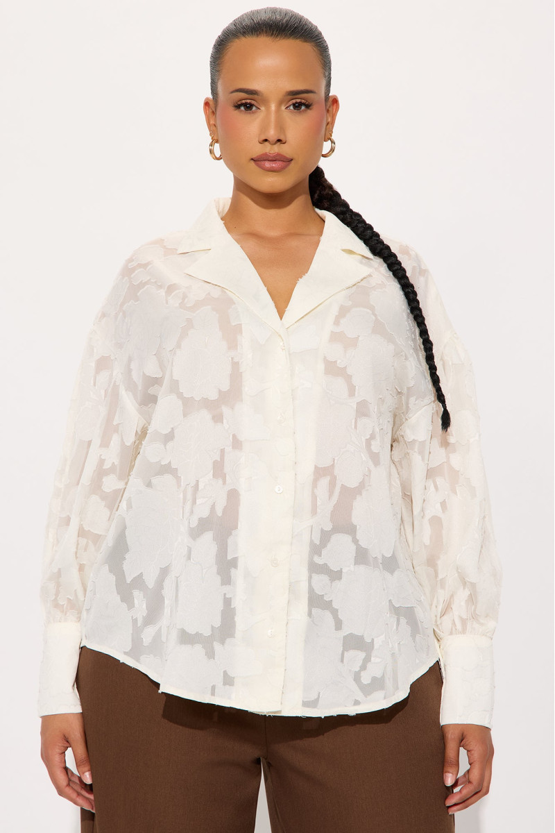 Елегантна жакардова сорочка з довгими рукавами, прикрашена витонченим квітковим мотивом. Класичний комір та застібка на ґудзики створюють вишуканий силует, а тканина без еластичності гарантує бездоганну форму. Склад: 100% поліестер. Ця сорочка стане вашою улюбленою деталлю гардеробу.