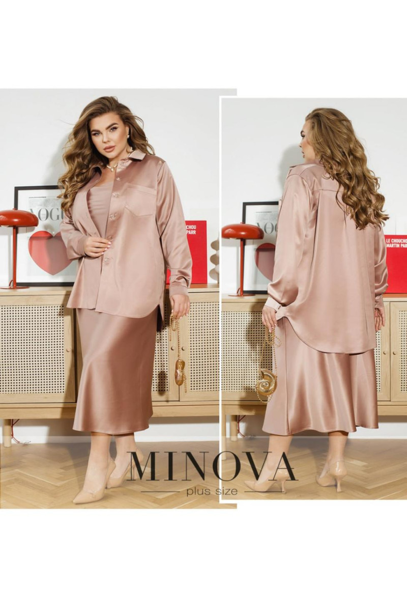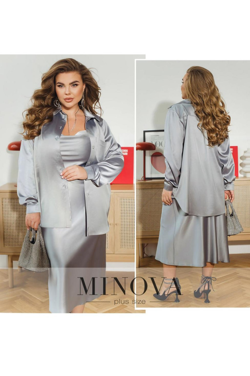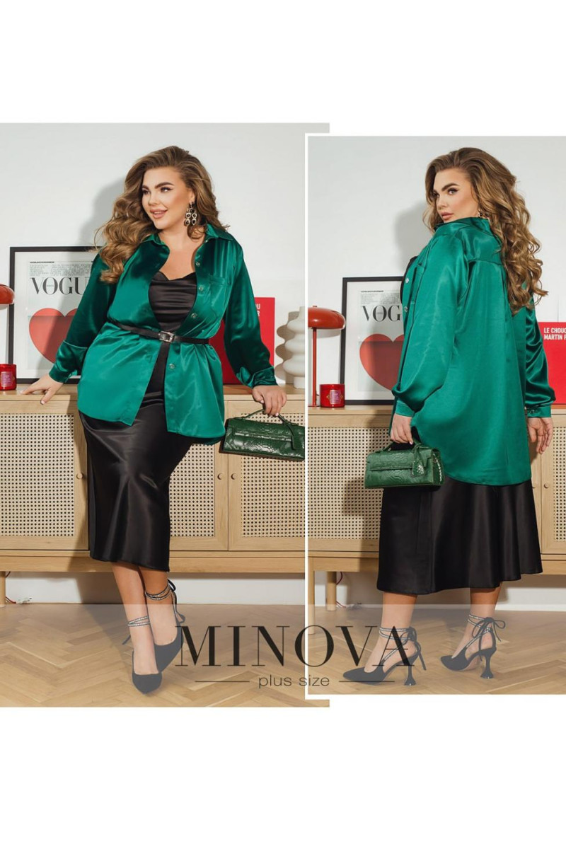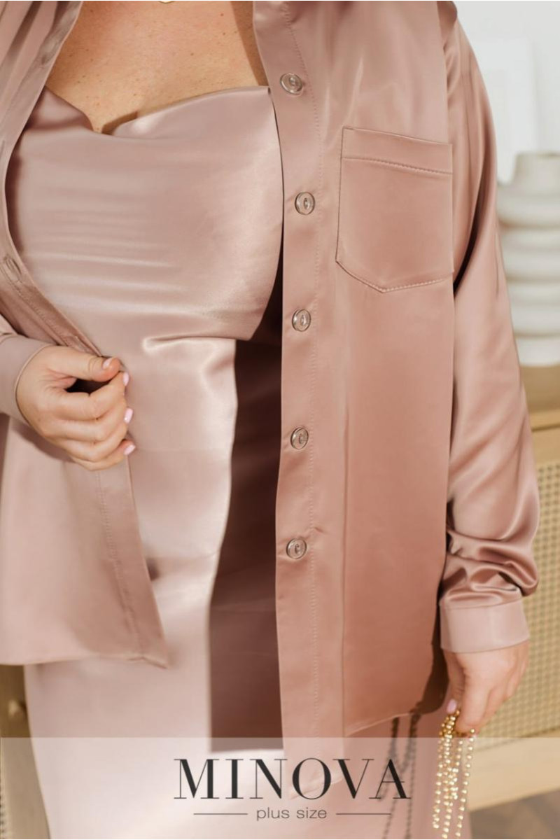 Вишукана шовкова сорочка — уособлення елегантності та стилю, яка стане базовим елементом вашого гардероба. Елегантний комір із ґудзиком та довгі, вільно спадаючі рукави з манжетами на ґудзиках додають образу витонченості й завершеності. Акуратна кишенька на грудях стає не лише практичним елементом, а й стильним акцентом. Сорочка застібається на ґудзики, підкреслюючи її класичний характер. Ця модель ідеально поєднується з нашою шовковою спідницею, створюючи гармонійний і елегантний образ для будь-якої події чи святкового вечора. На моделі представлений розмір 50-52