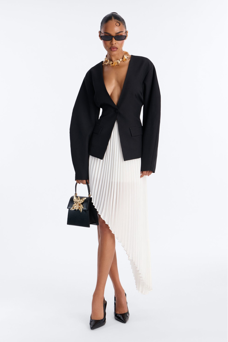 Представляємо жакет "Mariella" — справжній шедевр елегантності з унікальними об'ємними рукавами, що надають образу особливого шарму. Цей жакет виготовлений з преміальних матеріалів, що забезпечують неперевершений комфорт та бездоганний вигляд. Він ідеально підкреслить вашу індивідуальність та стане яскравим акцентом у будь-якому вбранні, надаючи йому вишуканості та витонченості.