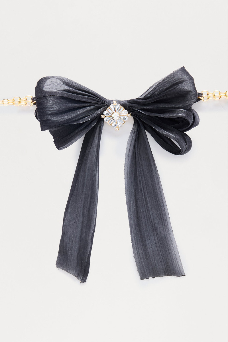Елегантний чокер "Beautiful Melody" стане вишуканим доповненням до вашого образу. Цей чокер прикрашений витонченим бантиком з тканини та блискучим оздобленням зі стразів, що додає йому шарму. Надійний замок-застібка (лобстер) забезпечує зручне та безпечне носіння. Ідеальний аксесуар для створення незабутнього стилю.