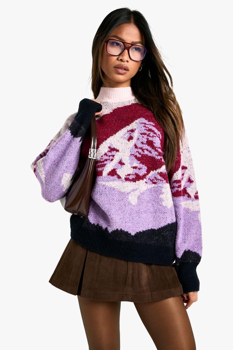 Пейзажний в'язаний новорічний джемпер великого розміру