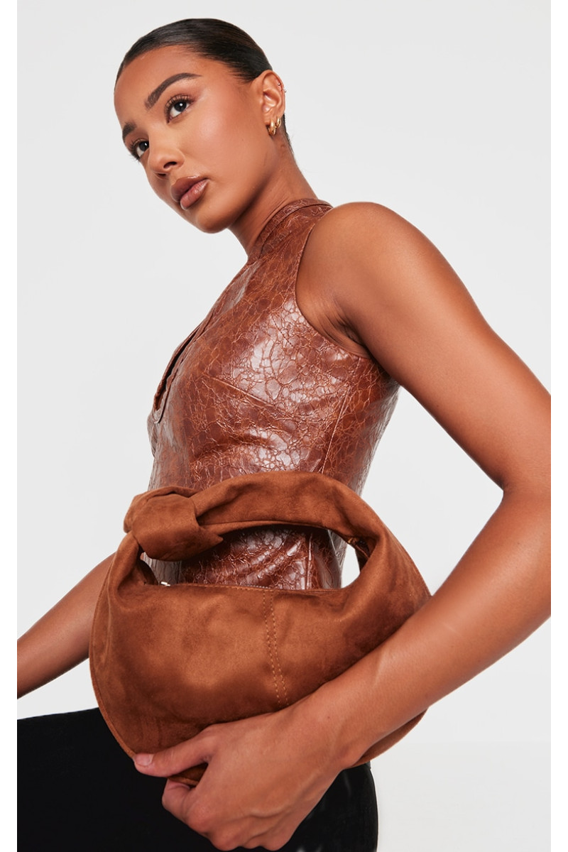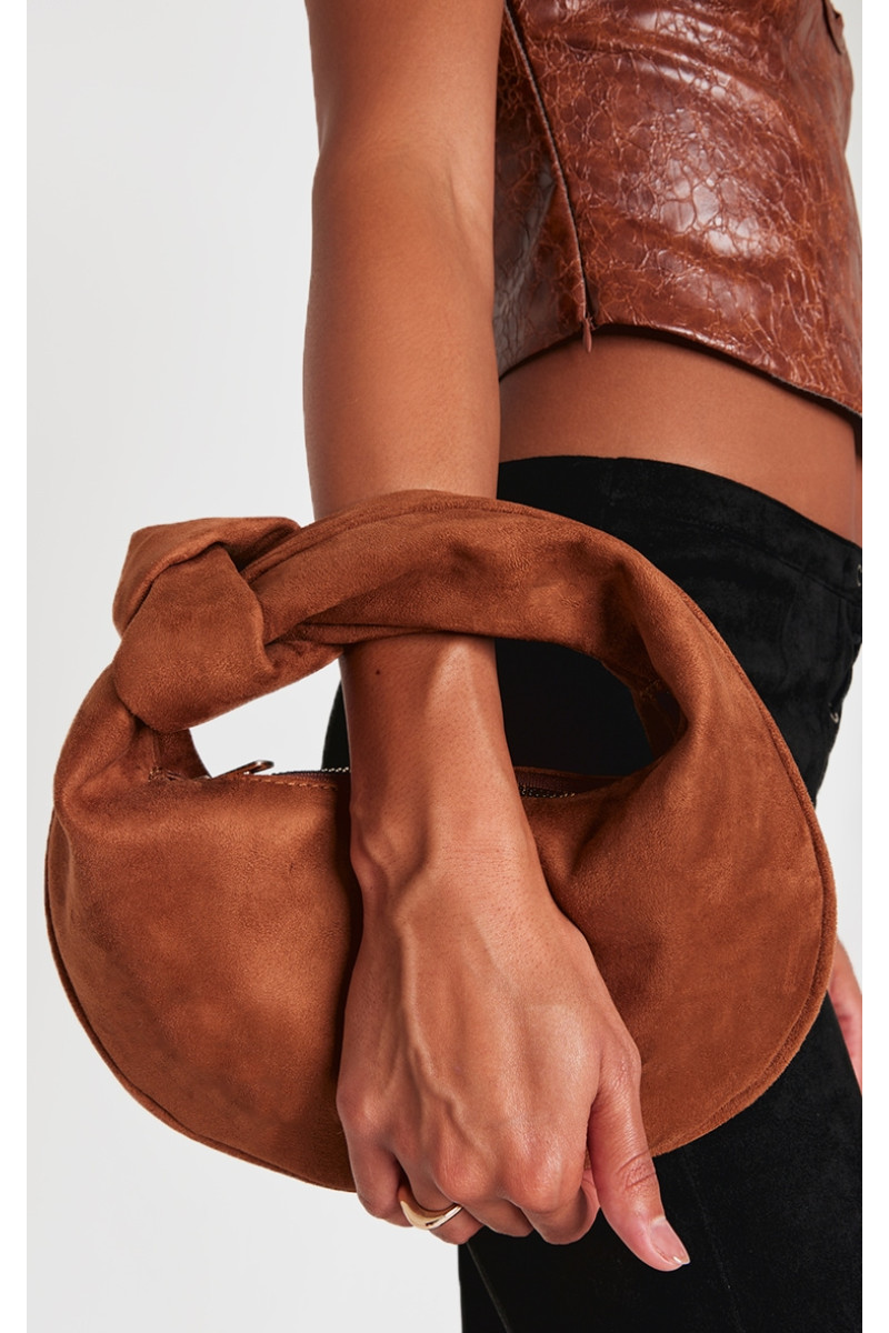 Додайте до своєї колекції цю світло-коричневу сумку через плече із штучної замші з ручкою в вузол, щоб створити образ, який можна без зусиль одягати або скидати. Що вам не сподобається в нейтральному темно-коричневому кольорі з розкішною штучною замшею та дизайном вузлової ручки? Доповніть образ із коричневим топом зі штучної шкіри та джинсами-кльош. Приблизна висота: 24 см/9,5 дюйма Приблизна ширина: 30,5 см/12 дюймів Приблизна глибина: 2,5 см/1 дюйм Категорія: АксесуариТип продукту: Сумка через плечеКолір: Світло-коричневийВипадок: День