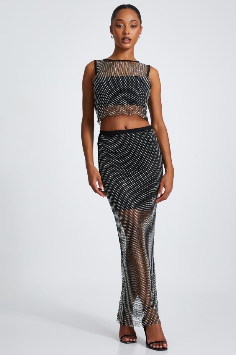 Ця спідниця Midaxi оснащена сітчастою накладкою, прикрашеною прикрасами зі стразами, що пропонує стильний дизайн високої талії. Ідеально підходить для виходу, це забезпечує влесливий силует для різних випадків.