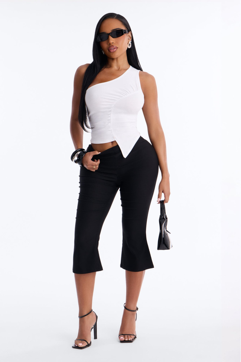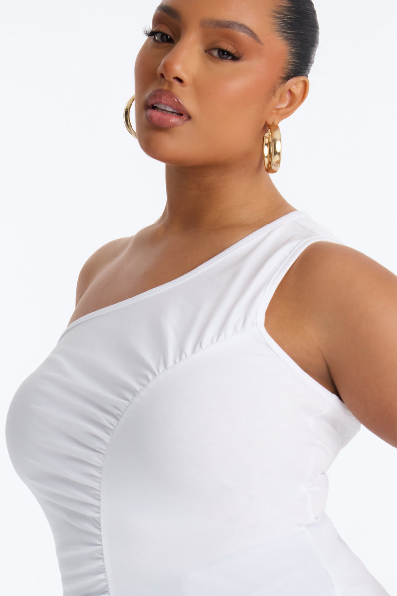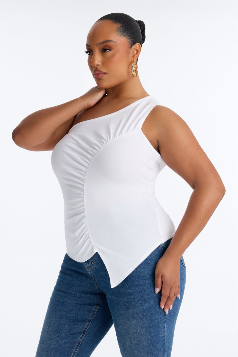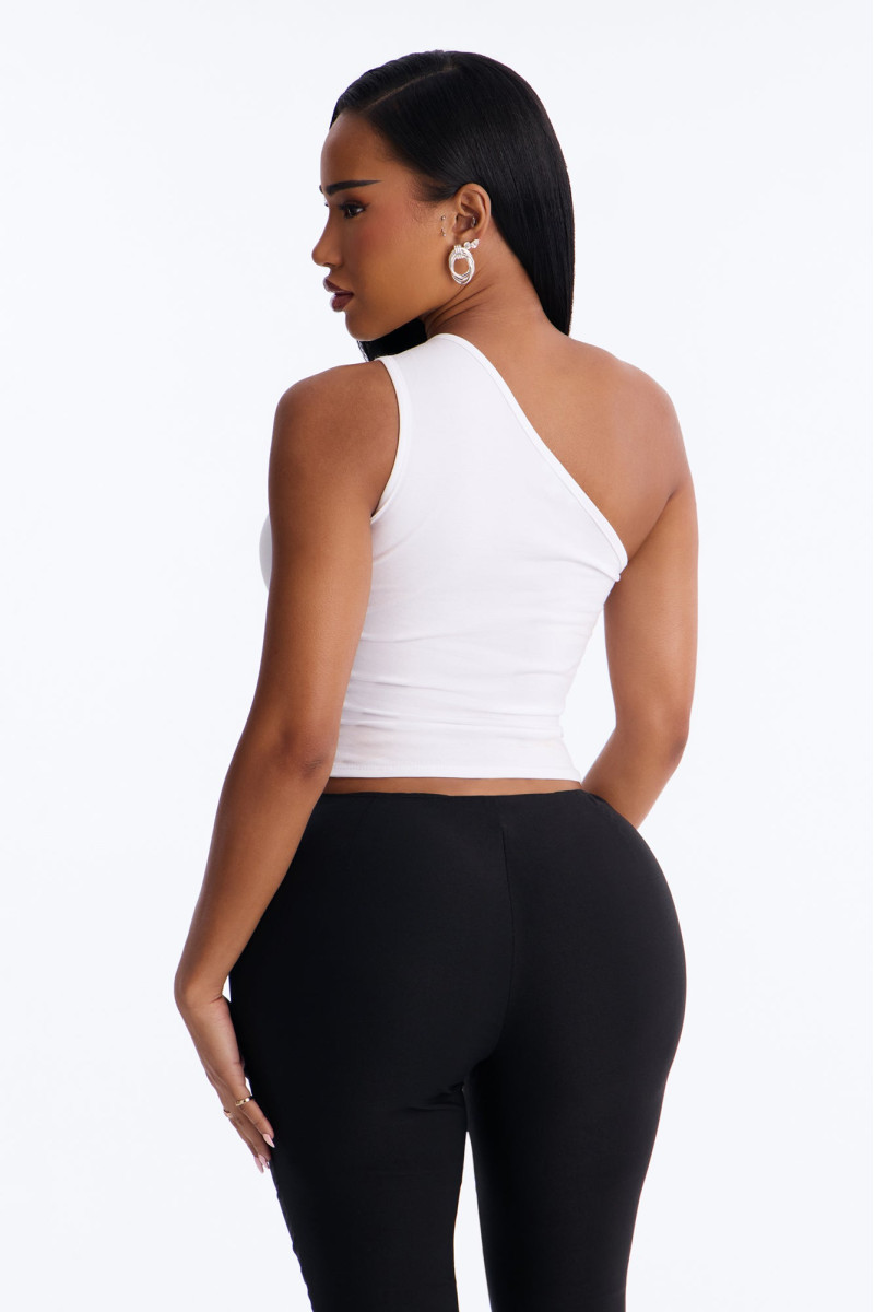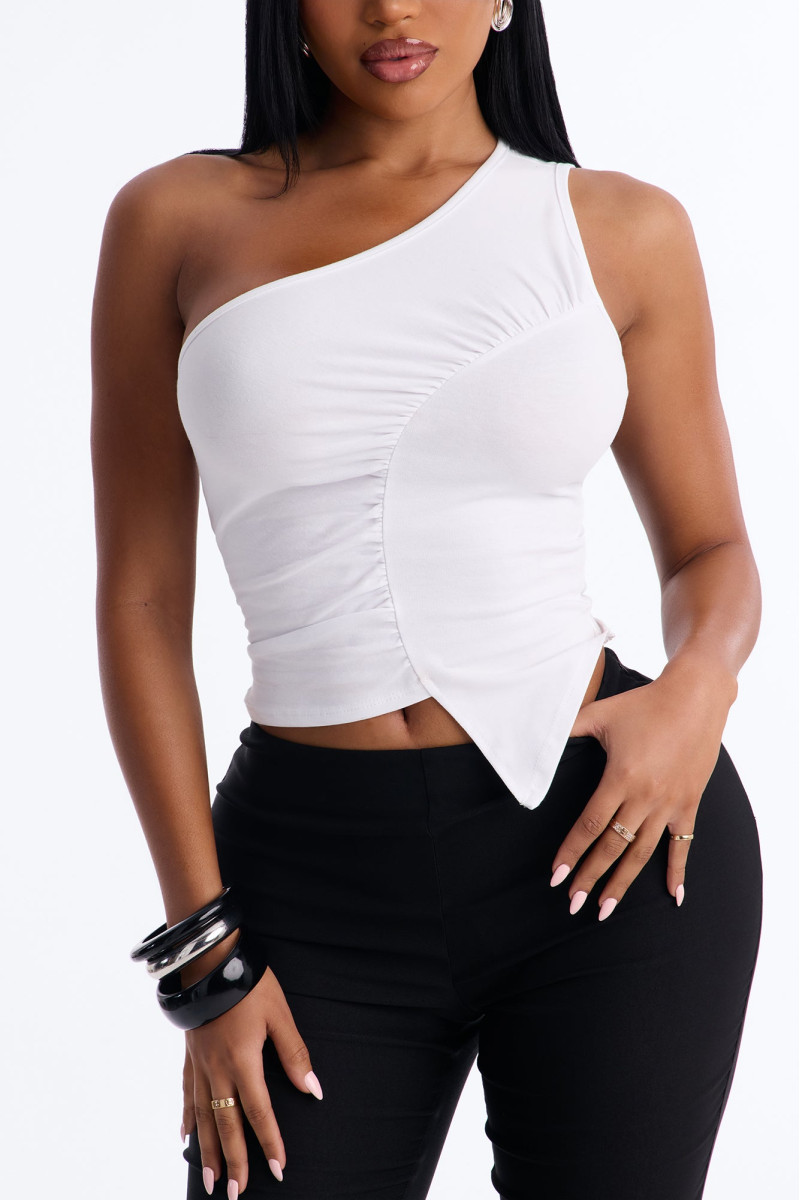 Відкрийте для себе вишуканість цього топу без рукавів, що демонструє елегантне драпірування на одне плече. Його асиметричний крій та м'які лінії створюють сучасний і витончений образ, ідеальний для особливих випадків або для того, щоб додати нотку розкоші до повсякденного вбрання. Виготовлений з приємної на дотик тканини, цей топ забезпечує комфорт і бездоганний вигляд.